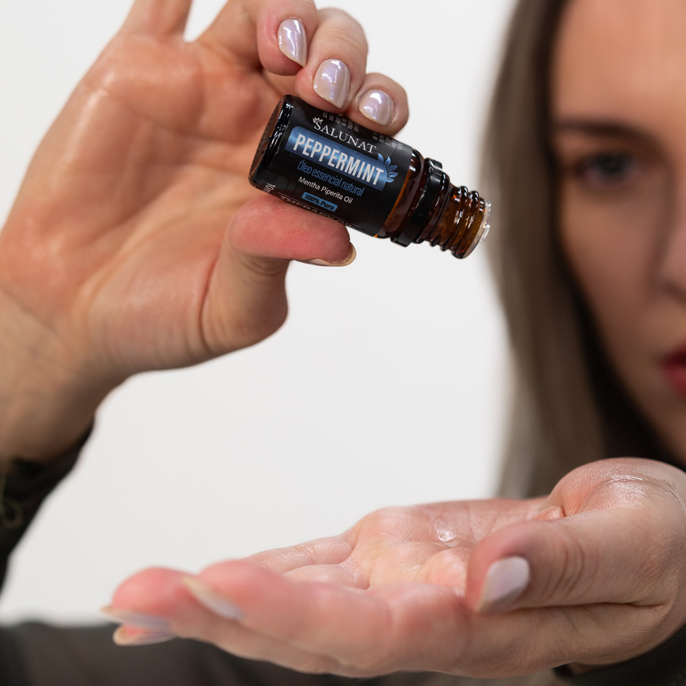 Principais usos do óleo: Dores de cabeça, enxaqueca, ressaca, asma, sinusite, diminuição na produção de leite, perda de sentido de cheiro, gastrite, energia, febre e ondas de calor, equilíbrio emocional.